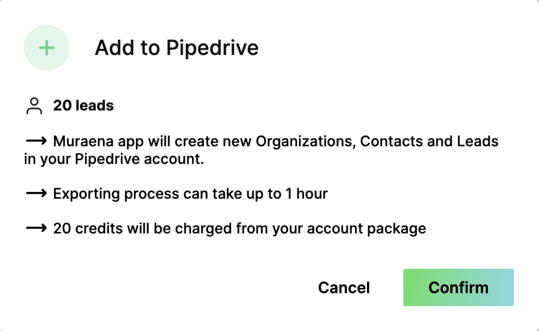 The synergy between Pipedrive's CRM excellence and Muraena's precise data streamlines your lead management process, enriching your sales pipeline for better follow-up and engagement.